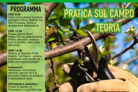 CARPINETI PARCO MATILDE E GIARDINO DEI FRUTTI ANTICHI Un corso rivolto a chi vuole imparare le basi della potatura sia nella teoria che nella pratica per poter mettere in pratica quello che si impara sui propri alberi!!